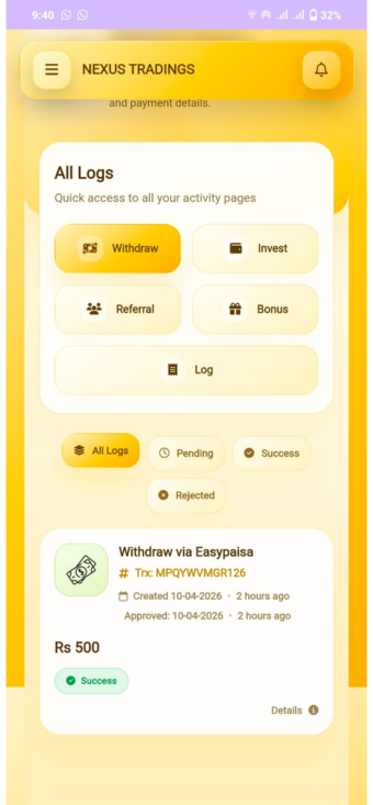 Users should approach such platforms carefully avoid investing large amounts and always prioritize safety. For a better experience Naxus Tradings APK Game is recommended to use official apps or real games instead of relying on unverified APK platforms.
